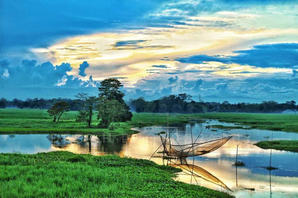 Assamese culture, Sattriya dance, and bamboo houses are among the attractions. Renting a bicycle and exploring the village streets is a memorable experience.
